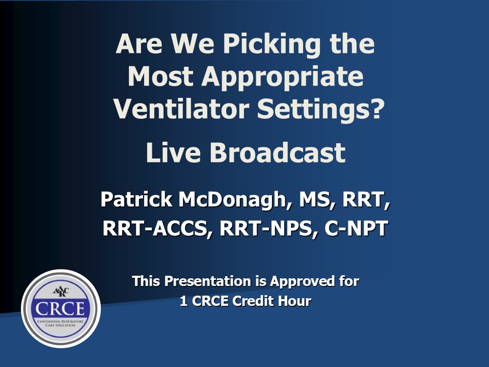 Are We Picking the Most Appropriate Ventilator Settings? Live Broadcast