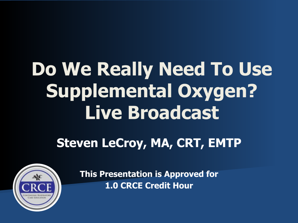 Do We Really Need To Use Supplemental Oxygen? Live Broadcast