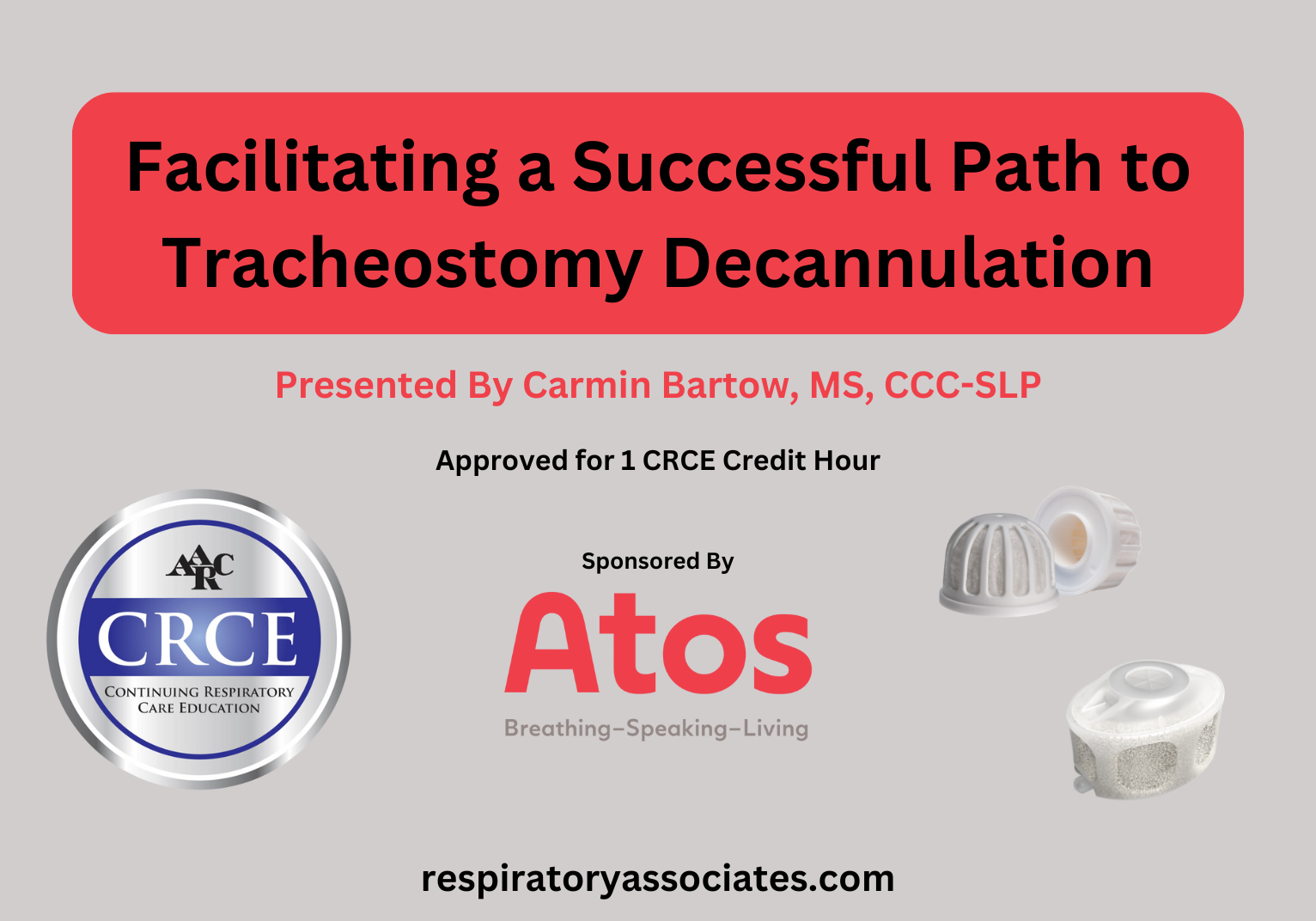 This broadcast is sponsored by Atos Medical. Atos Medical is a global leader dedicated to enhancing the quality of life for individuals with a tracheostomy or laryngectomy. Tracoe is Atos Medical’s tracheostomy brand. The Tracoe portfolio offers a full range of pediatric and adult tracheostomy products including tracheostomy tubes, HMEs, filters, dressings, and speaking valves. They are committed to improving patient outcomes by offering high-quality products, comprehensive support, and expert guidance to healthcare professional, patients, and caregivers. Their sponsorship is allowing you to take this class for only $5.