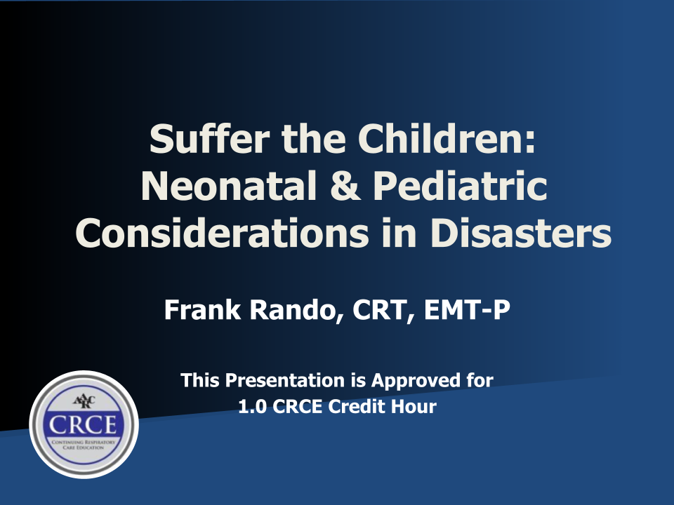 Suffer the Children: Neonatal & Pediatric Considerations in Disasters Live Broadcast